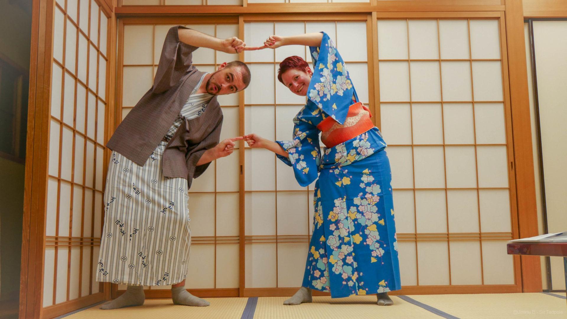 Nous montons dans le train pour Kinosaki Onsen, station thermale dont les sources d’eaux sont chauffées par l’activité volcanique de la région. Et C’est une nuit beaucoup plus traditionnelle qui nous attend, dans un ryokan de 150 ans.