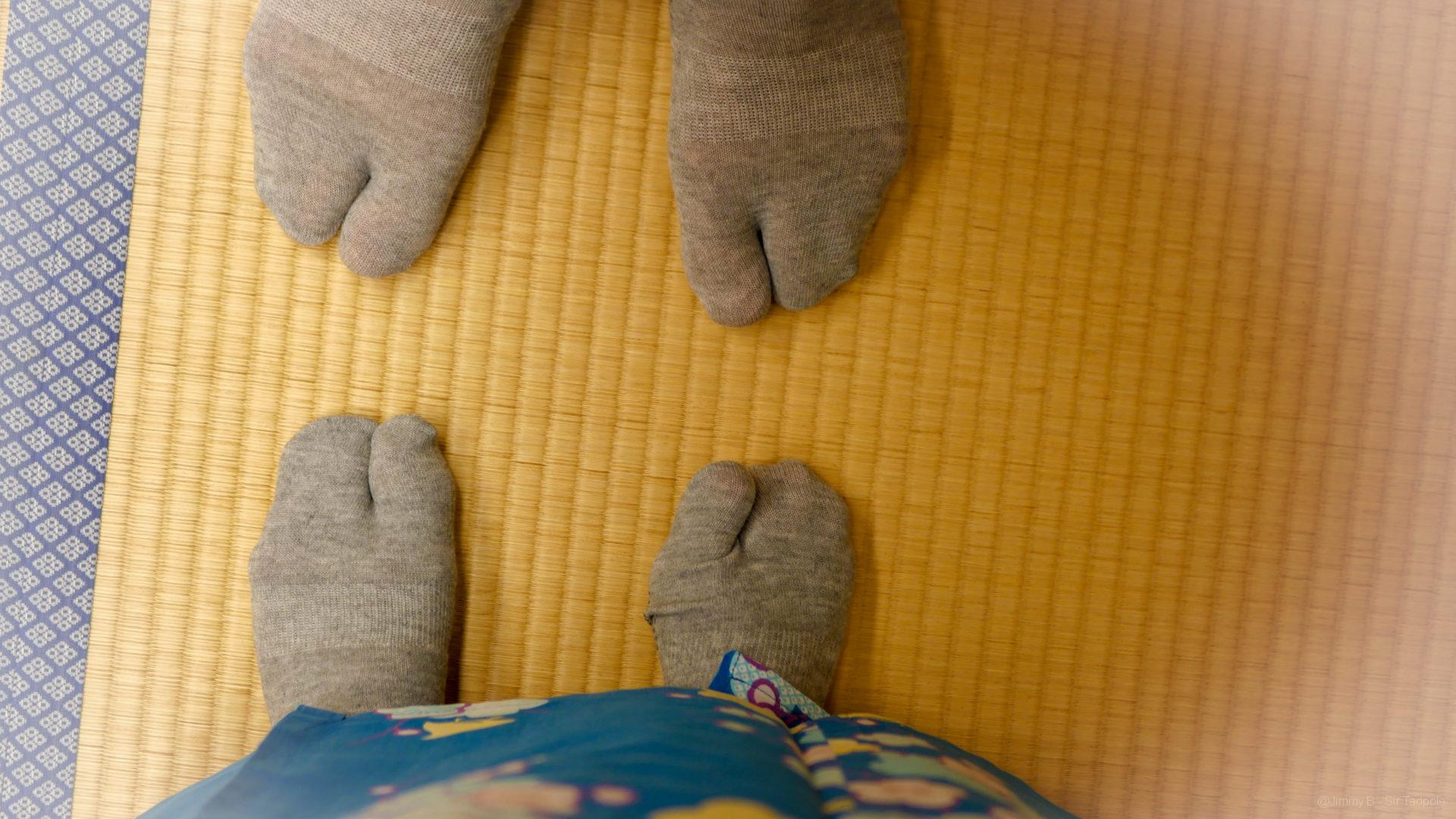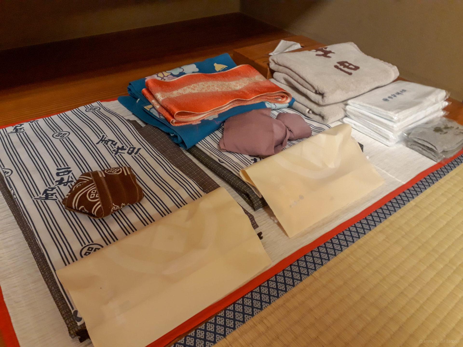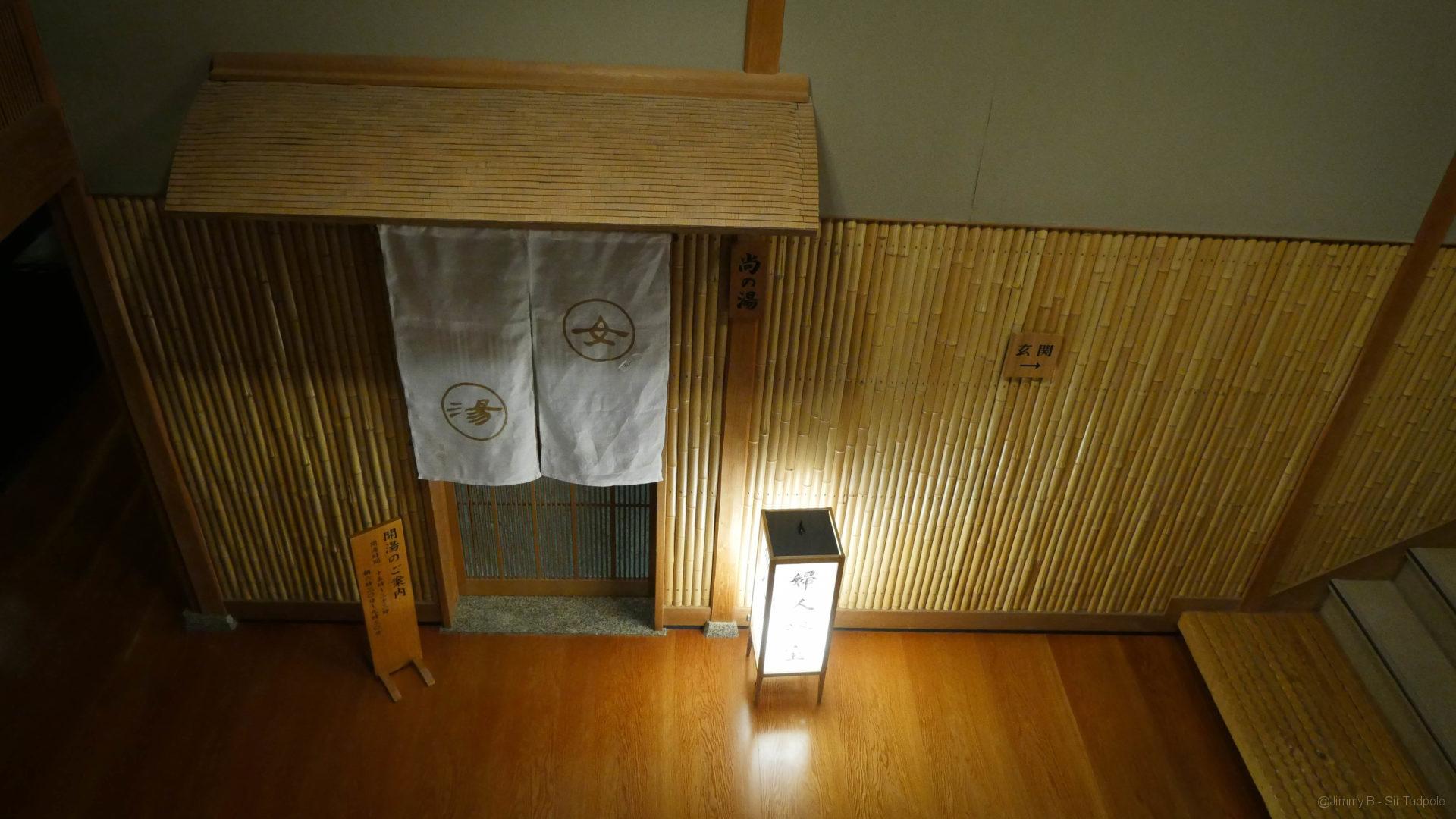 Arrivés au ryokan, la première des choses est de se déchausser et de revêtir les petits chaussons. Puis nous sommes conduits dans notre suite. Oui j’ai bien dit suite, avec un bain chaud privatif à l’extérieur 😜.
