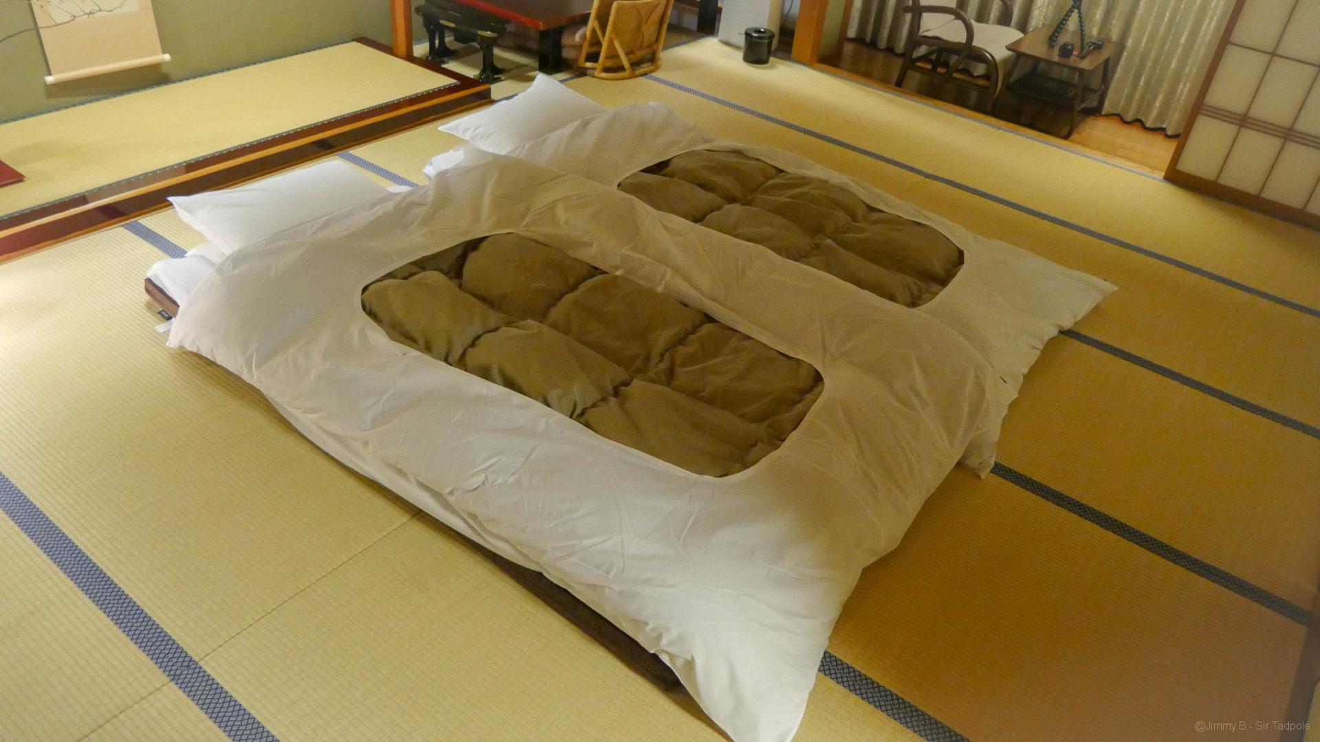 Après un petit tour digestif dans le ryokan, à notre retour la table est nettoyée et nos futons sont prêts.