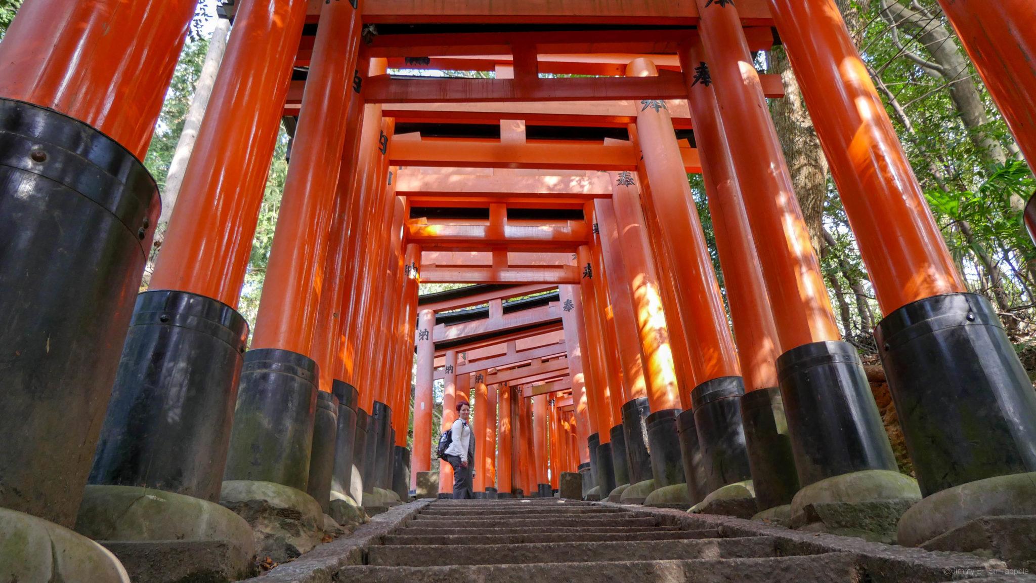Après quelques minutes les visiteurs se dispersent et nous pouvons profiter du lieu pleinement, au milieu du premier tunnel de Tori, l’instant est magique.