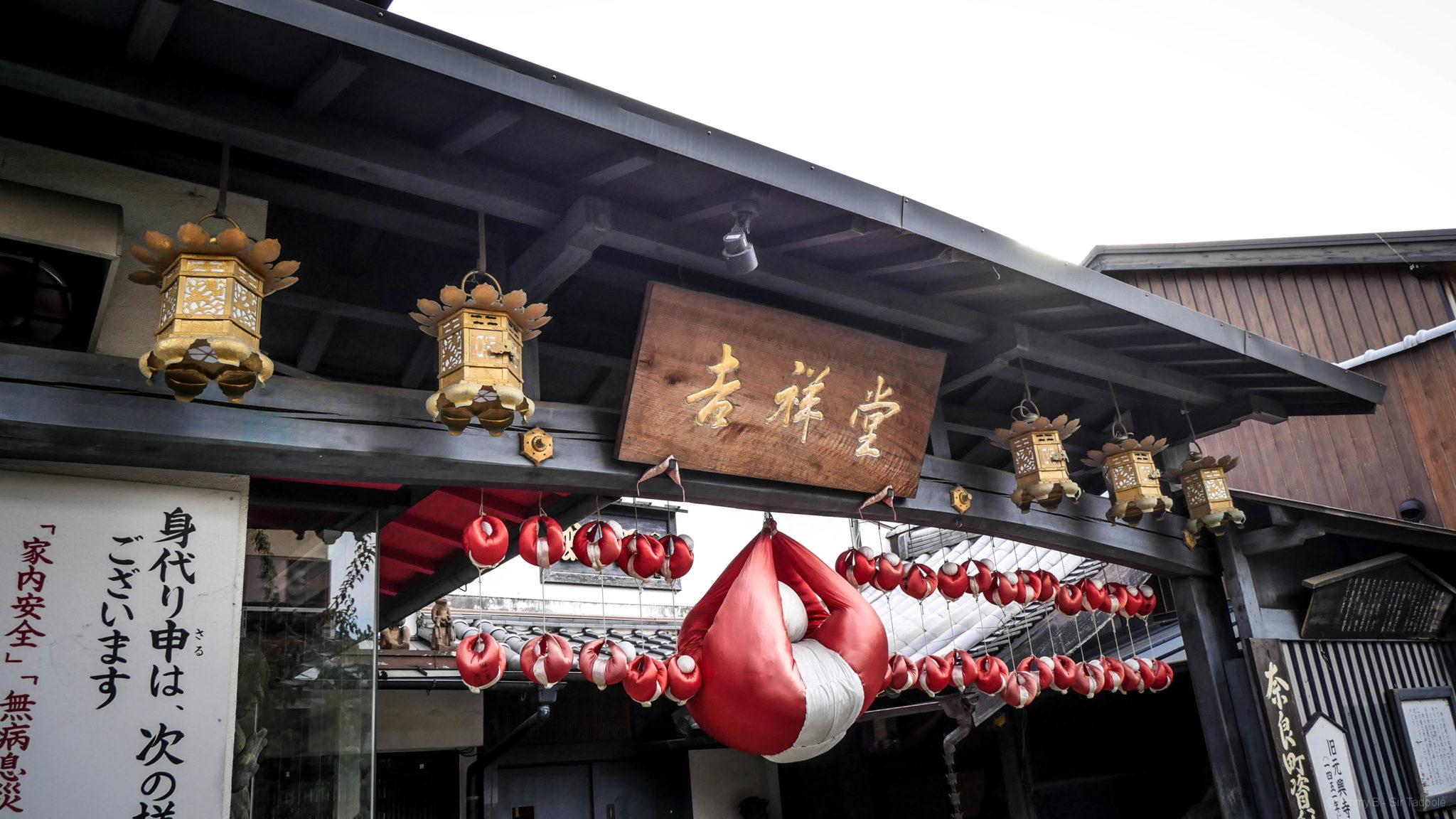 Sur le chemin, on profite de l’avenue commerciale qui ouvre tout juste ses portes et on tombe sur un fabricant de Daifuku (friandise japonaise à base de pâte de riz et de purée d’haricots rouges). Regardez la vidéo avec le son 😉 .